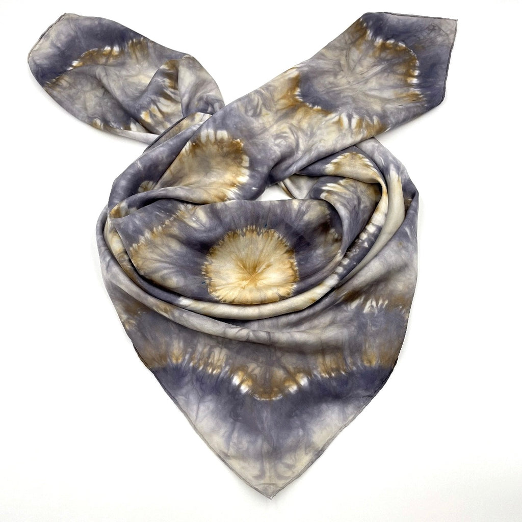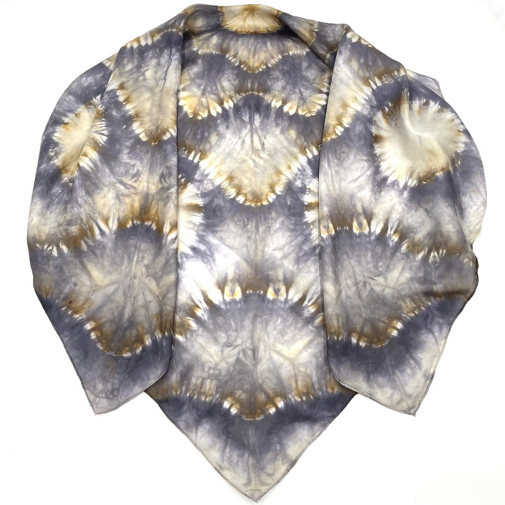- Handmade 43"x43" painted and/or dyed 100% SUSTAINABLE SILK LARGE SQUARE SCARF or SHAWL in various shades of beige, tan, brown, silver and charcoal gray with geometric mosaic mandala kaleidoscope pattern and hand rolled hem. SHIPS in 1 BUSINESS DAY. FREE SHIPPING in USA on orders over $50.00. ONE OF A KIND WEARABLE ART. When it's gone...it's gone baby!